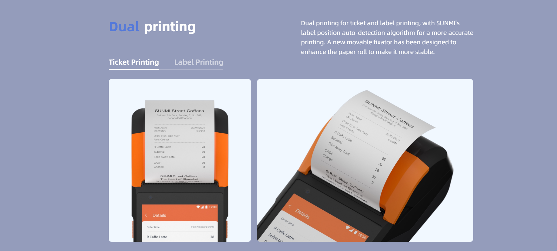 Rubber seals added to the edges of the paper bin, charging port, and earphone port help prevent water, oil and dirt damages. Even in a restaurant with a lot of oily smoke and water stains, it can protect the device for continuous and stable operations.